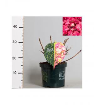 De helderrode bloemschermen zijn niet te missen van deze prachtige randbloeier. Maar deze hortensia heeft meer te bieden waardoor het een prachtige toevoeging is in iedere tuin; het blad van deze hortensia is namelijk zeer donkergroen van kleur, bijna zwart. Over het blad is een wirwar van felgroene nerven te zien. Alle hortensia’s uit de Black Diamond serie hebben dit decoratieve donkere blad waarmee ze stralen in uw tuin.