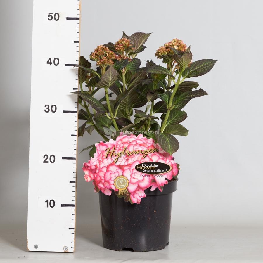 Miss Saori is een betoverend mooie hortensia en sleepte dan ook niet voor niets de prijs in de wacht voor beste plant van het jaar in 2014. De hortensia bloeit met bollen dubbele bloemen die een prachtig opvallende kleur hebben. De plant is gekweekt in Japan en dat is ook af te zien aan de bloemen. De volle bloemen zijn mooi wit tot lichtroze van kleur met een donkere omlijsting van ieder bloemblad. Dit geeft een prachtig contrast met het donkere blad dat in het najaar een kleurverandering kent.
