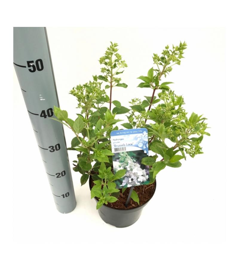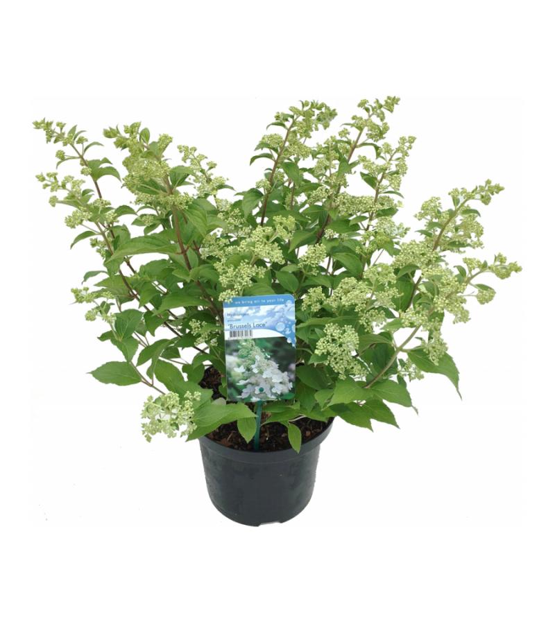 Pluimhortensia Brussels Lace is ook wel bekend onder de naam White Lace. De pluimhortensia is een echte zonaanbidder. Een zonnige standplaats draagt bij aan een rijkelijke bloei van de sierlijke witte pluimen die gedurende de bloeiperiode een lichte verkleuring kennen. De pluimen van de Brussels Lace zullen een groenige tint krijgen richting de herfst. De pluimhortensia bloeit op eenjarig hout, u kunt de hortensia dus volledig snoeien vroeg in het voorjaar om toch te kunnen genieten van de betoverend mooie bloemen. Doet u dit niet dan zal de pluimhortensia eerder verwilderen en enorm de hoogte in schieten. Een goede snoei is dus niet perse nodig maar wel gewenst.