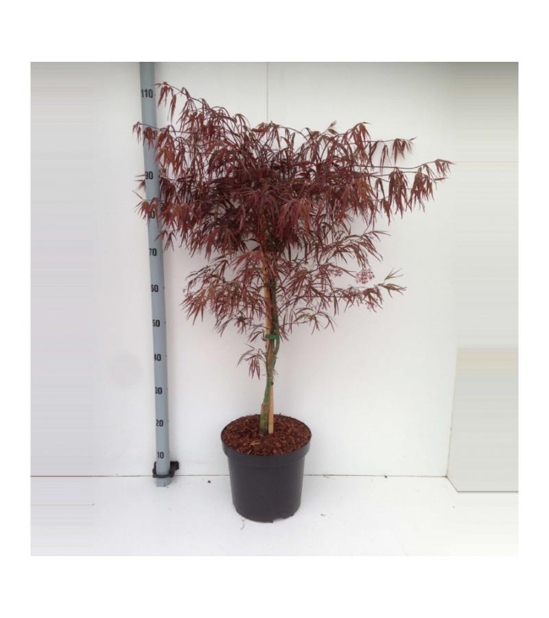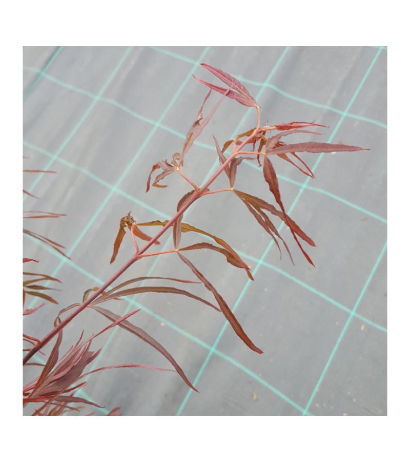 Deze laagblijvende sierheester bereikt een uiteindelijke hoogte van 150cm. Ideaal om in een pot op uw terras te zetten. Zo kunt u door het seizoen heen de inrichting van uw terras nog veranderen en kunt u blijven genieten van deze prachtige esdoorn! Is het geen weer meer om buiten te zitten? Zet de plant dan op een centrale plaats voor het raam, zelfs in de winter zal het een prachtig beeld geven met het grillige uiterlijk van de takken wirwar. Het smalle blad van deze esdoorn is rood van kleur en zal afhankelijk van het zonlicht lichter of donkerder kleuren gedurende het seizoen. Prachtig als contrast met uw groene planten!