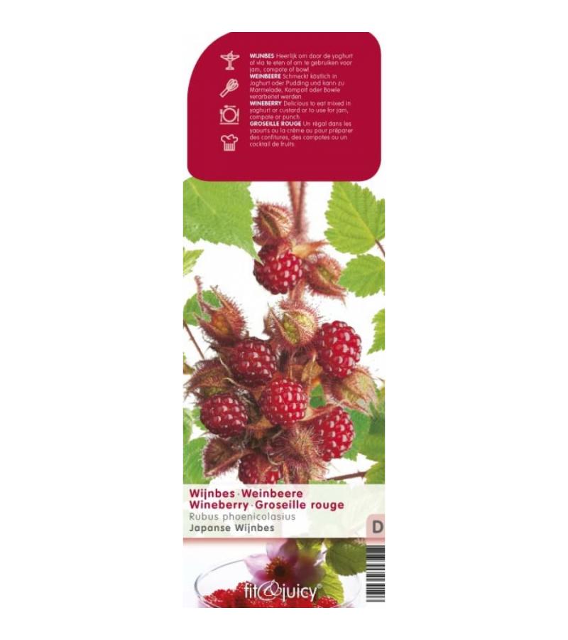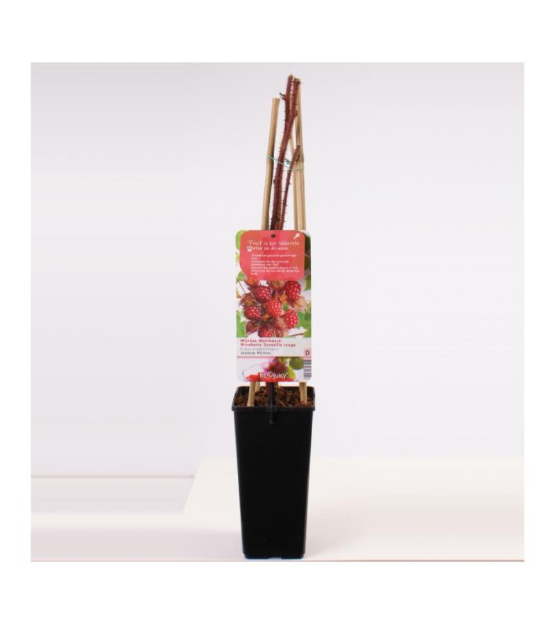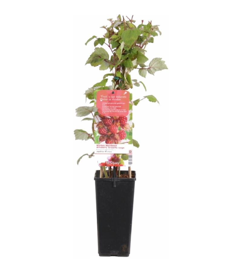 De Japanse wijnbes is familie van de braam. Hij levert vruchten die over het algemeen niet in winkels verkrijgbaar zijn; extra leuk om zelf te telen dus! De roodbehaarde stelen zijn daarnaast ook nog zeer decoratief. De Japanse wijnbes is een rijk producerende plant die doorlopend vruchten zal geven in juli en augustus.