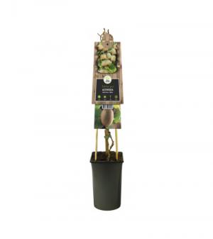 Hoewel dit een kiwi plant is, hoeft u geen vruchten te verwachten aan deze plant. De kiwi plant is niet zelfbestuivend, dit betekent dat er 2 planten aanwezig moeten zijn (mannelijk en vrouwelijk). De mannelijke plant maakt met roomwitte bloesem stuifmeel aan om de bloemen van de vrouwelijke kiwi plant te bestuiven. De vruchten komen enkel aan de vrouwelijke plant. Eén mannelijke plant kan tot 5 vrouwelijke kiwi planten bevruchten. Deze sierheester kan een hoogte bereiken tot 7m. Deze plant is een goede bestuiver voor de vrouwelijke kiwi “Hayward”, eveneens te vinden in ons assortiment klimplanten.