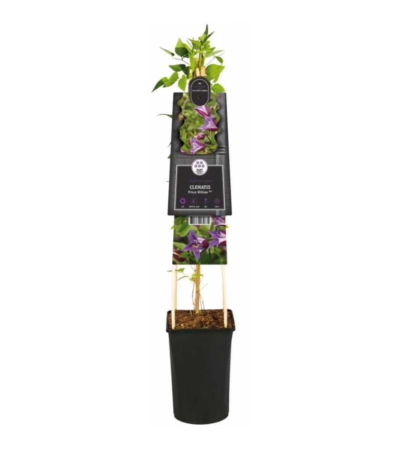 Met een Clematis Prince William in je tuin heb jij de zomer in je bol. Deze prachtige klimplant is voorzien van paars met rode bloemen die uitbloeien in de maanden: juni, juli, augustus en september. Doordat de plant niet tot matig winterhard is, zal deze klimplant zijn bloemen verliezen tijdens de winter.