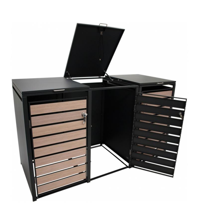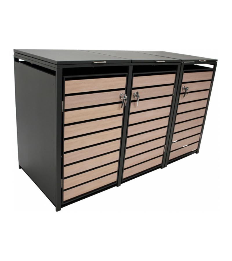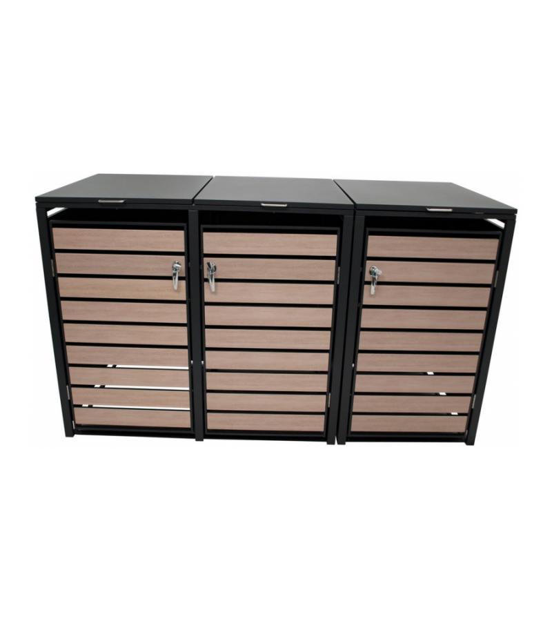 Kliko ombouw - Verzinkt staal Houtlook - Antraciet Bruin voor 3 kliko's