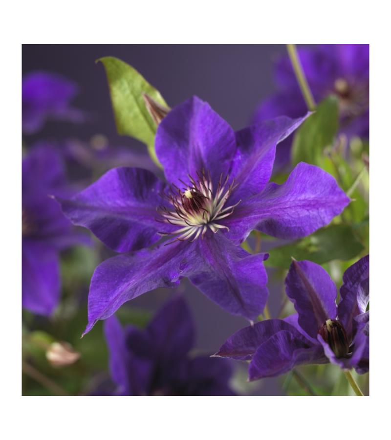 Grote, violetpaarse bloemen sieren deze prachtige bosrank; een van de bekendste en populaire soorten. Een clematis is een goede klimmer, maar dient hier wel geleiding bij te krijgen. Het is een slingerende klimmer en moet zich dus vast kunnen grijpen om zich vast te kunnen zetten, dat doet hij onder andere door zijn ranken ergens omheen te wikkelen. Met zijn maximale hoogte van 2,5m is deze paarse bosrank tevens geschikt voor de wat kleinere tuinen.
