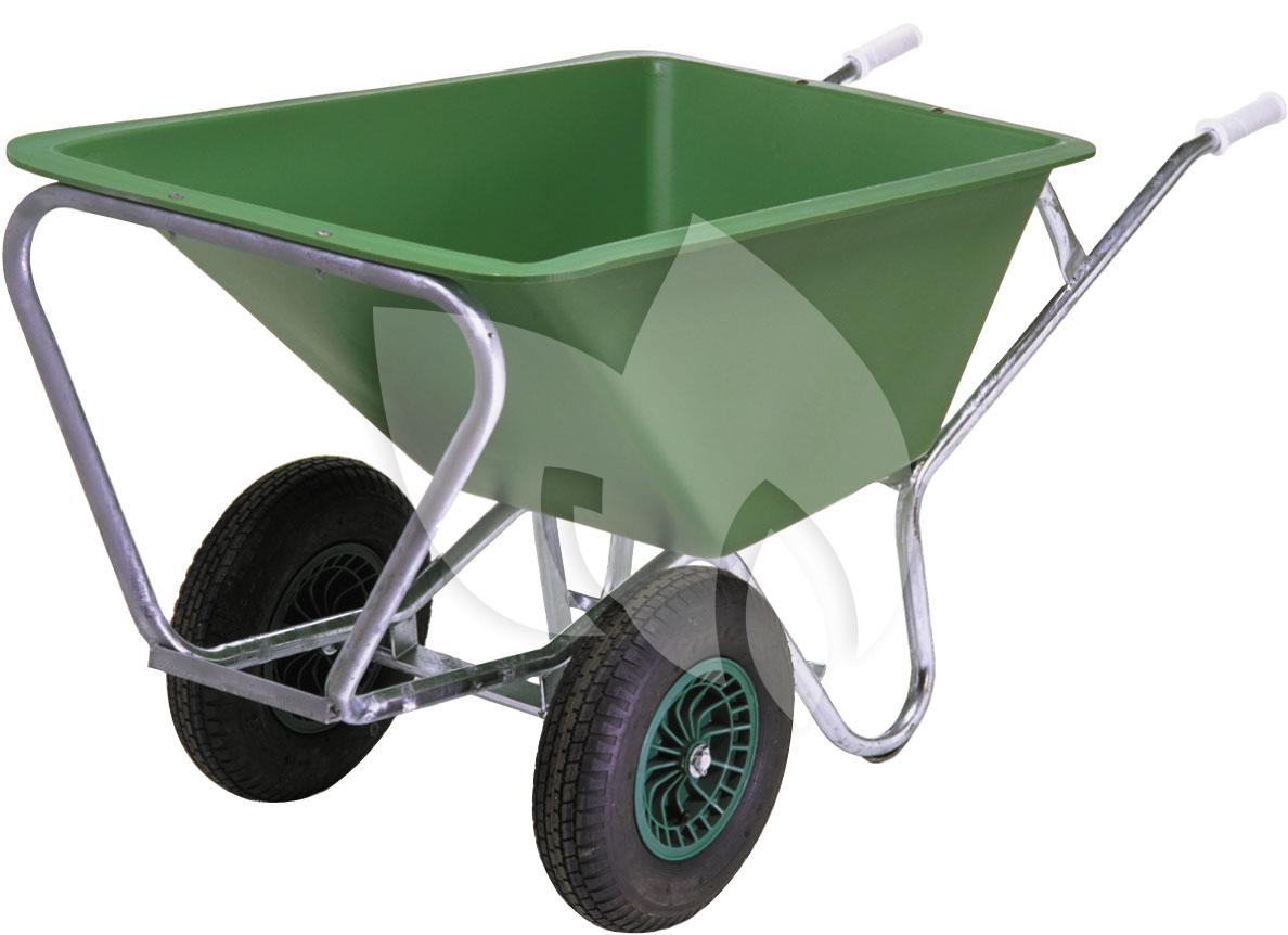 De kruiwagen 160 liter dubbel wiel is een volume kruiwagen. De kruiwagen is inzetbaar voor grote tuinen, maneges of kwekerijen. Het onderstel is van gegavaniseerd staal dus zal hij in de toekomst vollendig roestvrij blijven. Door de extra grote klepbeugel is de kruiwagen makkelijk rechtop te zetten. door de twee wielen heeft de kruiwagen iets meer stabiliteit.