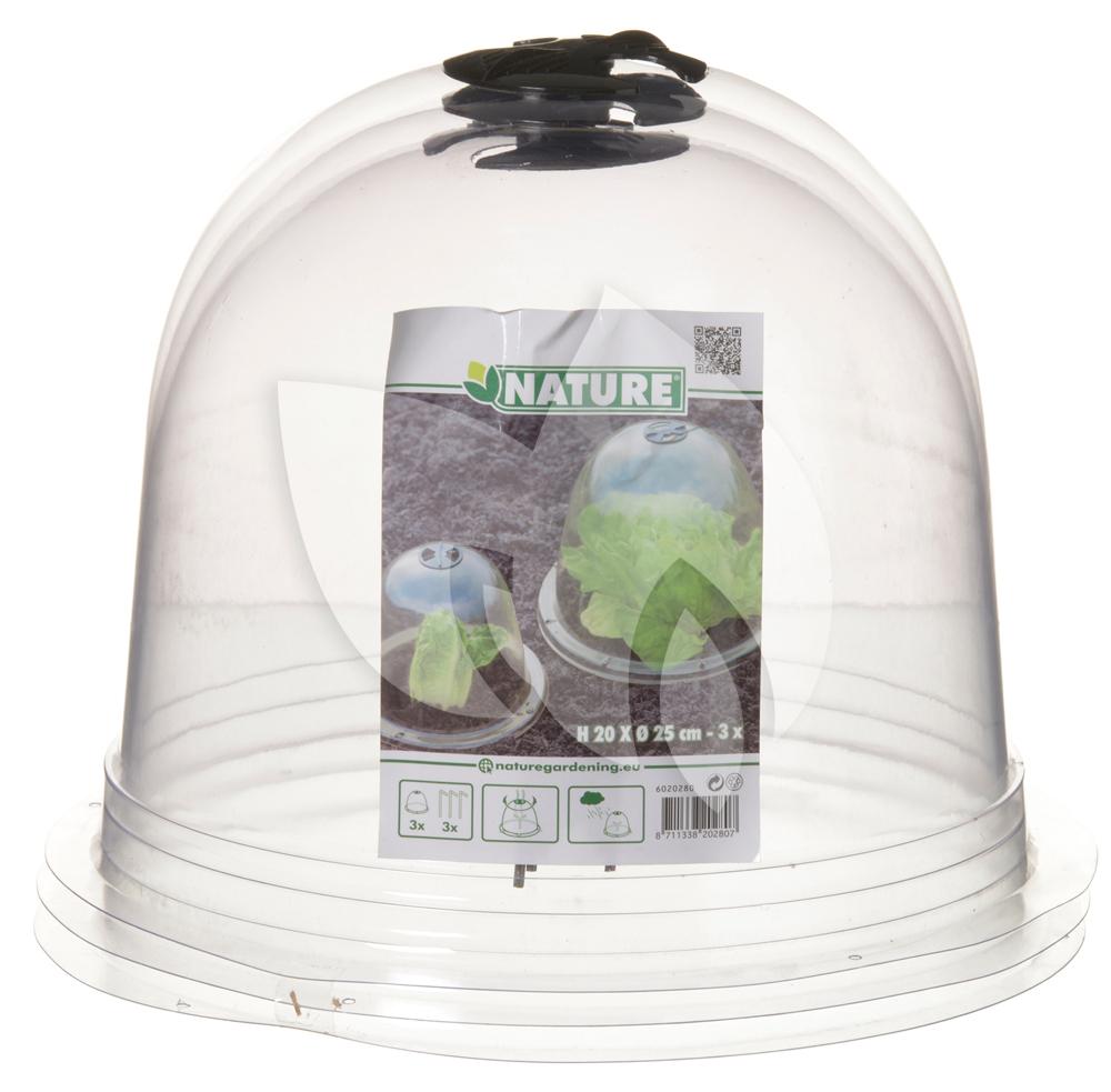Voor het beschermen van uw jonge plantjes tegen insecten, onweer en kou zijn deze kweekkappen van Nature ideaal! Deze beschermkapjes werken tevens ook als kleine broeikasjes. Wanneer u de kappen over uw jonge planten in de vollegrond neerzet wordt de groei van de planten gestimuleerd. De kappen zijn perfect te gebruiken voor sla en andere moestuinzaailingen.