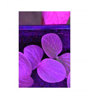 De LED verlichting heeft evenveel rode als blauwe lampjes, waarbij rood helpt de groei te bevorderen en blauw de groei stimuleert.