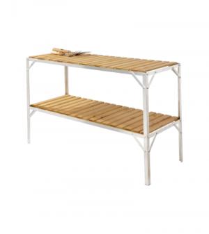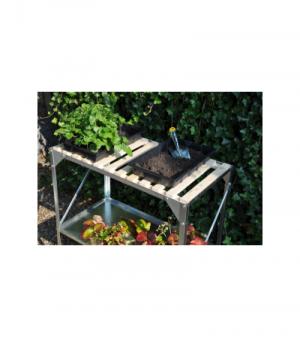 Voor gebruik in huis, op terras of in de kas is het kweekrek ‘Grower XL’ uitstekend geschikt om te kweken op 2 niveaus. Het solide aluminium frame wordt fraai gecombineerd met hout. Zowel het bovenblad als het onderblad bestaan uit houten latten, afkomstig uit goed beheerde bossen. Dit product wordt geleverd als bouwpakket.