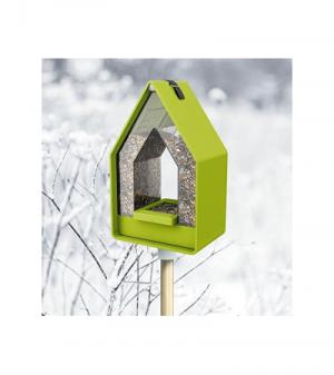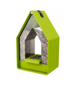 Met dit leuke voederhuisje helpt u de kleine vogels de winter door. In de koude periodes kunt u de voedersilo vullen met voer waardoor de vogels altijd iets te eten hebben. Het voedergedeelte is transparant zodat u direct kunt zien wanneer deze bijgevuld dient te worden. De groene kleur van het voederhuisje geeft het geheel een grappige en gezellige uitstraling waardoor het huisje niet alleen leuk is voor de vogels, ook voor uzelf!