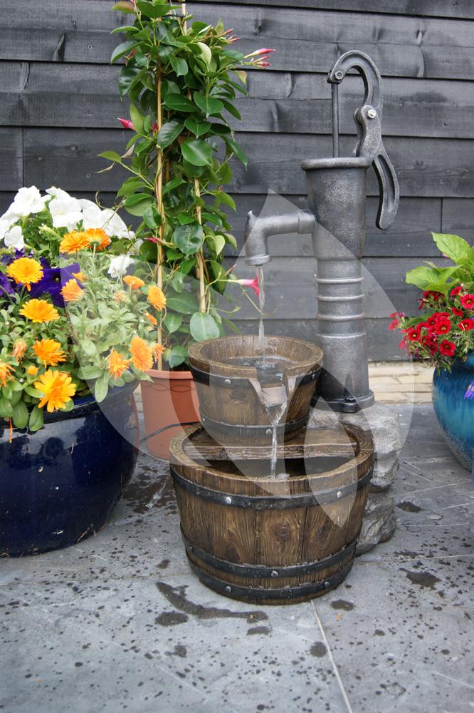 Dit klassiek vormgegeven waterornament is een verrijking voor iedere tuin! Het Las Vegas waterornament is voorzien van een zwengelpomp en twee rustieke vaten waarbij het water vanuit de zwengelpomp via de vaten naar onder stroomt en uiteindelijk weer omhoog wordt gepompt. Dit rustieke, decoratieve ''zwengelpomp met vaten'' ornament voegt aan iedere tuin of terras een authentieke sfeer toe!