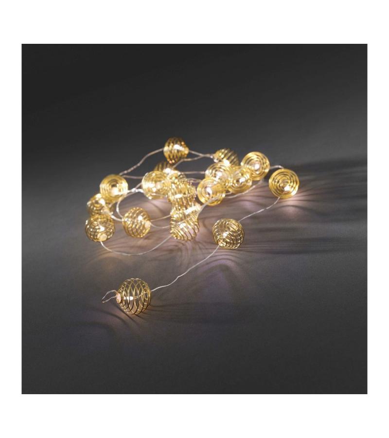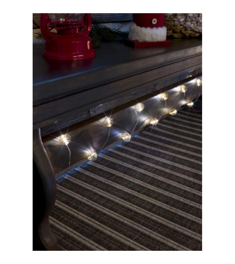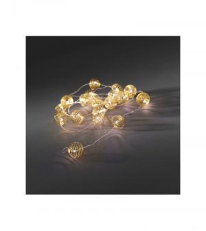 Het lichtsnoer is voorzien van 24 ballen die zijn omringd met goudkleurige metaaldraad. In iedere bal bevindt zich een LED-lampje die zorgt voor een sfeervol warm, wit licht. De kabel van het lichtsnoer is transparant waardoor alleen de verlichte metaalballen op zullen vallen in uw gedecoreerde kerstboom, in uw versierde vaas of op uw feestelijk gedekte tafel. Het lichtsnoer werkt op batterijen en is daardoor gemakkelijk in gebruik en te verplaatsen. Batterijen worden niet meegeleverd.