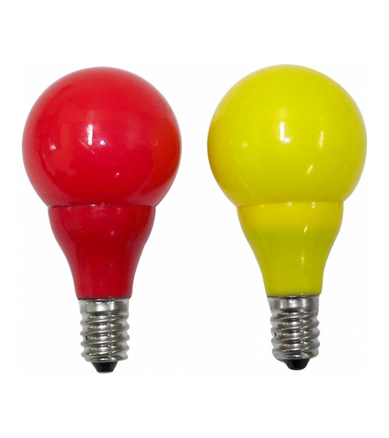 Deze losse LED lichtbronnen zijn geschikt als vervangingslamp voor party verlichting. De lichtbron heeft een vermogen van 0.24 watt en is voorzien van een E14 fitting. De LED lichbron is verpakt per twee stuks, het betreft een rode en een gele lamp.