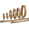 Een lederen dressuurlijn waarmee u uw hond kunt trainen, doordat deze riem verstelbaar is in verschillende maten. Zo kunt u de hond kort houden, alsmede wat meer vrijheid geven.