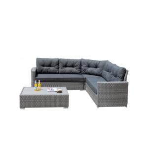 De loungeset bestaat uit een aluminium frame en is omwikkeld met dubbel halfrond wicker. Wicker zorgt niet alleen voor een prachtige uitstraling van de bank, het biedt daarnaast nog vele andere voordelen. Zo is wicker zeer stevig en onderhoudsvriendelijk waardoor hij jarenlang meegaat, daarbij is wicker weerbestendig waardoor de loungeset het hele jaar door buiten kan blijven staan. Ten slotte is wicker licht van gewicht waardoor het eenvoudig is om de loungeset te verplaatsen. Het wicker heeft een grijze kleur en in combinatie met de donkergrijze kussens geeft dit een mooi effect.