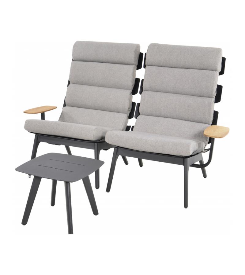 Ventus Negro zwarte duo loungeset - 2 persoons