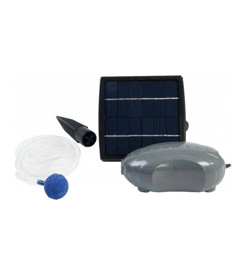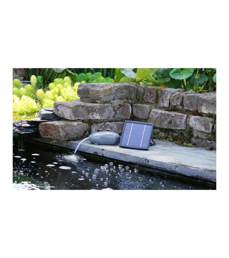 De Air solar luchtpomp is een natuurvriendelijk beluchtingssysteem. U kunt de pomp direct gebruiken na installatie. Het systeem wordt gevoed door zonnestralen die het zonnepaneel bereiken. De Air solar 100 luchtpomp is geschikt voor vijvers tot maximaal 1000 liter. De luchtpomp is voorzien van één luchtslang die zal zorgen voor een optimale zuurstofverrijking.
