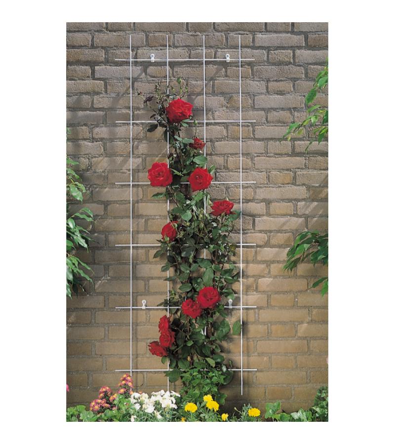Het klimrek is vervaardigd uit verzinkt staal of groen, bruin of grijs geplastificeerd verzinkt staal. Het metalen klimrek is dankzij het bijgeleverde bevestigingsmateriaal (pluggen, schroeven, afstandhouders) op een eenvoudige wijze tegen een schutting of muur te plaatsen. Door het gebruik van de afstandhouders kunt u eenvoudig ruimte vrijlaten tussen het klimrek en de muur. Hierdoor wordt het onderhoud makkelijker en kunnen uw struiken of klimplanten optimaal groeien. Tip: plant of zaai aan de voet van de muur en zorg er daarna voor dat de planten,  naarmate zij verder groeien, het klimrek voldoende gaan bedekken.