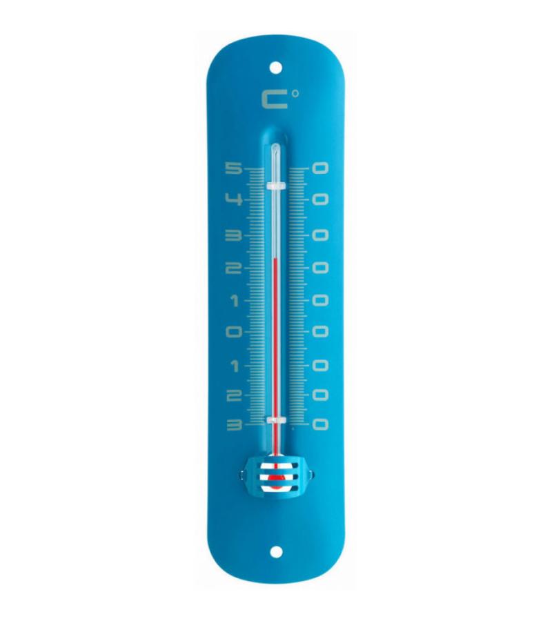 Metalen thermometer 19 cm blauw voor gebruik binnen en buiten