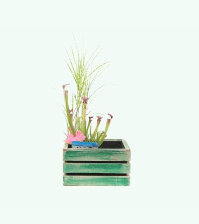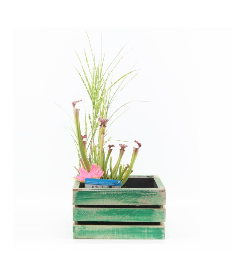Anders dan anders; dat is een mini vijver in dit geweldige groene houten kistje met 'used look'. Deze vintage uitstraling maakt het kistje helemaal af. Bij het kistje krijgt u een vijvermand geleverd met een combinatie van 3 waterplanten. Nadat u de vijvermand in het kistje hebt geplaatst voegt u leidingwater toe en uw mini vijver is al klaar! Geniet van wuivende waterplanten in deze hippe mini vijver!