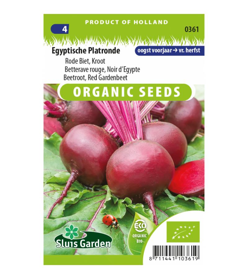 De Egyptische Platronde staat bekend vanwege zijn vroege teelt, snelle groei en prima smaak. De Egyptische Platronde is een vroege zaai- en vroege oogstbare biet met een wat afgeplatte vorm en dieprode kleur. Deze rode bieten, ook wel kroten genoemd, hebben een zacht en smakelijk vruchtvlees en voegen een leuk kleuraccent toe aan uw maaltijd!