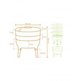 Met deze stapelbare wormenbak verwerk je het keukenafval in een mum van tijd in compost, dit op een eenvoudige, milieubewuste manier. Wormen zullen door je biologisch afval heen eten en vervolgens ontstaat er wormenthee en compost zonder dat je hier iets van ruikt. Tap de wormenthee af en schep het compost op je bloemen en planten. De wormenbak bestaat uit een onderbak op poten, een groentebak, een uitbreidingsbak, textielrooster en schepje. Exclusief wormen