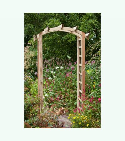 Deze rozenboog kent een lange levensduur door gebruik van geïmpregneerd grenen. De uitstekende halfronde toog geeft de rozenboog extra hoogte op de palen van 200cm. In zachte grond kunt u de rozenboog plaatsen met behulp van paalhouders. Wilt u de rozenboog op harde ondergrond plaatsen dan kunt u dit doen met behulp van de plaatpaalhouders.