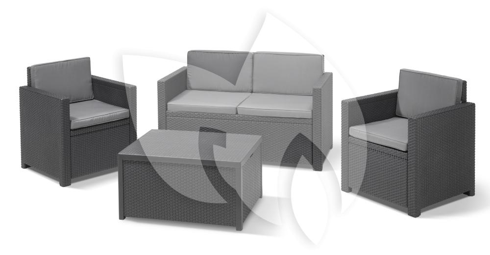 De Monaco is een trendy loungeset in wicker design. Dit mooie set bestaat uit 2 stoelen, 1 tweepersoons zitbank en een tafel. Het set is duurzaam en onderhoudsvriendelijk, dus u kunt jaren van het loungeset genieten. De tafel kan worden gebruikt om uw kussens in op te slaan en is waterdicht. Kussens zij inbegrepen bij dit set.