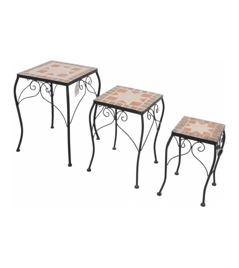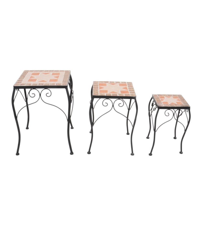 Mozaiek bijzettafeltje set van 3 vierkant