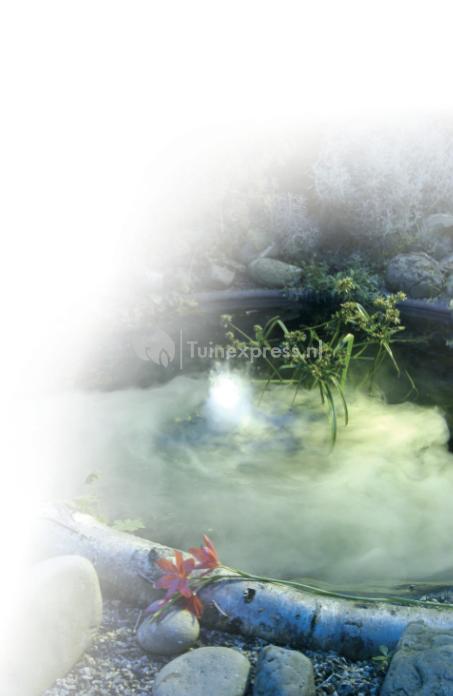 Deze MystMaker  III – Outdoor zorgt voor een unieke atmosfeer in en rondom uw tuinvijver. De Mystmaker zorgt voor een fijne verneveling welke een magisch effect geeft aan uw vijver. De Mystmaker wordt geleverd inclusief drie keramische schrijven waarmee u verschillende sprayeffecten kunt instellen. Plaats de drijvende ring op uw vijver en de mistmaker zal zich vrij over uw vijver bewegen.
