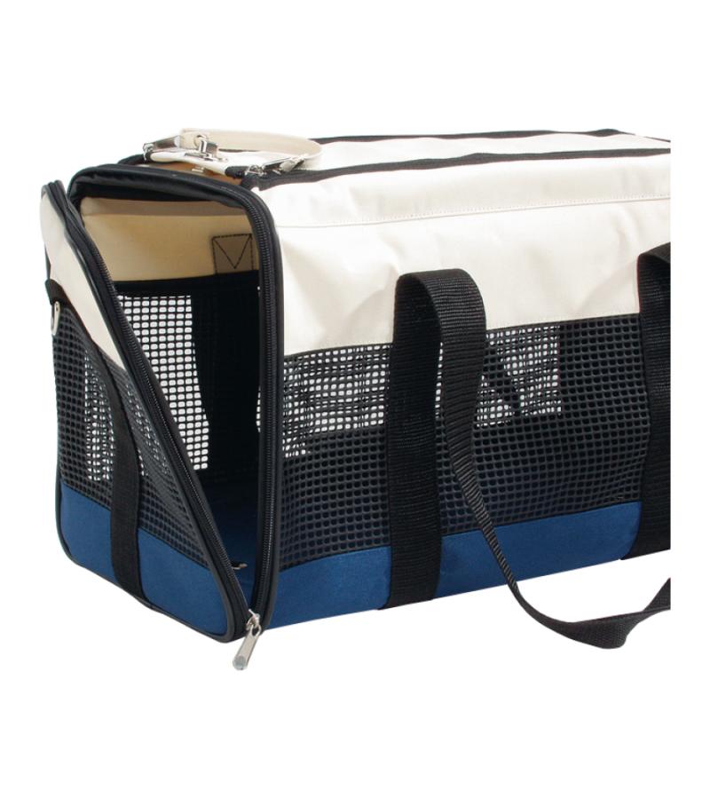 Nylon draagbare reistas met een opening aan zowel de bovenzijde als aan de kopse kant. Voorzien van gaas rondom voor voldoende zuurstof. Ideaal voor het vervoer van uw kitten, kat of kleine hond.