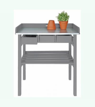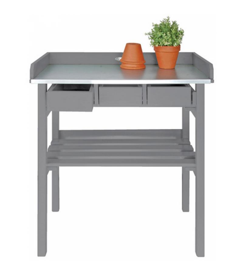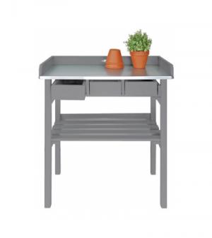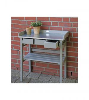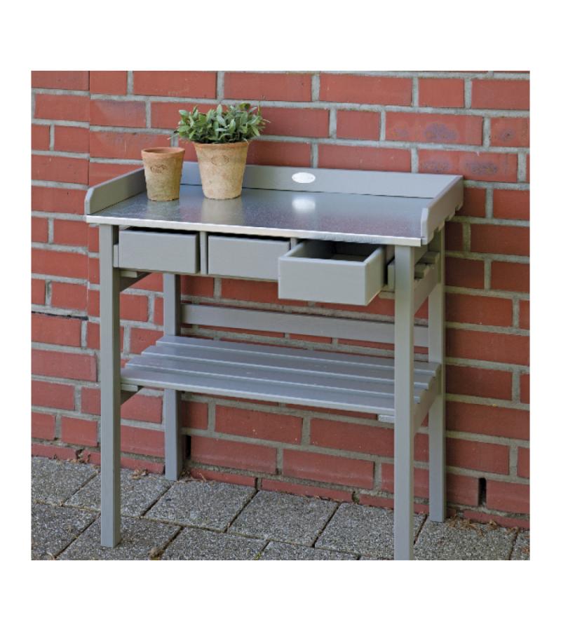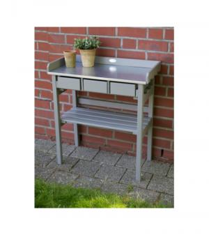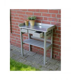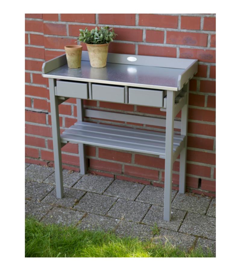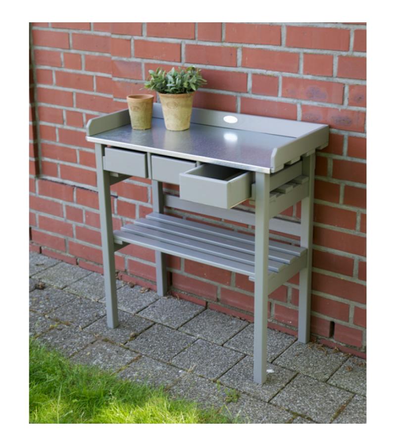 Voor gebruik in huis, op terras of in de kas is deze tuinwerktafel met lades wgrijs uitstekend geschikt. Het solide houten frame wordt gecombineerd met een bovenblad van zink. De tafel is voorzien van 3 handige lades, hier kunt u uw oppotbenodigheden in bewaren. De tafel is ook leuk om als sidetable te gebruiken in huis.