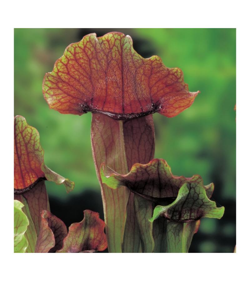 Vroeg in het voorjaar bloeit de oranjebruine trompetbekerplant met grote rode, geurende bloemen. Na bevruchting door onder andere bijen, verschijnen de kokervormige bladeren met glibberige kokerrand. Door het verteren van insecten komen vleesetende planten aan hun nitraten die ze nodig hebben op de voedselarme grond waar ze op groeien. Deze bijzondere planten staan prachtig gecombineerd met andere waterplanten in een vijvermandje.