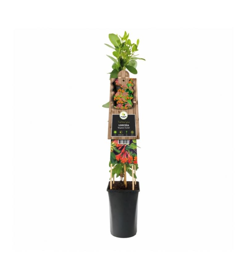 Kamperfoelie is een zeer geliefde plant om zijn trossen gekleurde bloemen. Deze oranjerode kamperfoelie bloeit met oranjerode bloemen die, in tegenstelling tot de meeste andere kamperfoelies, weinig tot niet geuren. Deze winterharde plant is een geweldige optie om een pergola of veranda mee te laten begroeien. De kamperfoelie is niet zelfhechtend en heeft dus wel begeleiding nodig bij het klimmen. Deze kamperfoelie houdt niet van volle zon en staat dus graag op een standplaats waar direct zonlicht gefilterd wordt door andere planten of op een halfschaduw plek. Laat u verrassen door de trossen prachtig gekleurde pijpvormige bloemen van de kamperfoelie!