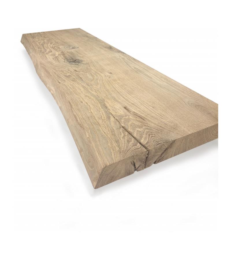 Deze plank van oud hout kent een boomstamvorm afwerking. Aan de voorzijde van de plank zie je nog goed waar de schors heeft gezeten en de golvende vorm hiervan is nog zichtbaar. Dit detail geeft een levendige, landelijke uitstraling. Oud eikenhout vertoont meer groeven dan massief eiken, het is een geleefde plank. Dit hout krijgt een nieuw leven door het te gebruiken voor de zwevende wandplank van oud eiken. Eikenhout is een van de bekendste houtsoorten en is erg geliefd in ieders interieur. Oud eiken heeft een karakteristieke uitstraling met hier en daar wat meer scheurvorming of de afdruk van knoesten.