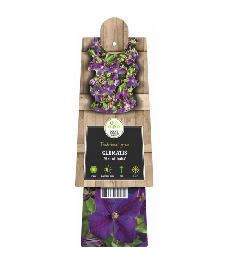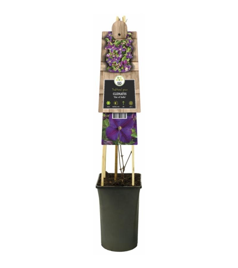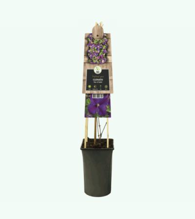 Deze laatbloeiende bosrank bloeit met paarse bloemen met een paarsrode streep over ieder bloemblad. Een interessante, warme kleurencombinatie die eens zo hard opvalt tussen het groene blad. De plant bloeit rijkelijk vanaf augustus. Om over een groter oppervlak een bloemenzee te creëren kunt ook ook verschillende clematissen plaatsen die verschillende bloeitijden kennen. De bloemenpracht wisselt elkaar dan af en u kunt genieten van een overdaad aan prachtige bloemen!