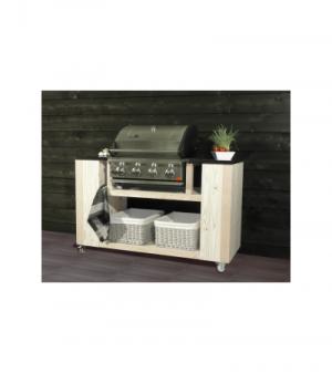• Barbecueframe: zwart geëmailleerd plaatstaal, rvs-branders met vlamoverloop en elektronische ontsteking. Frontpaneel rvs.