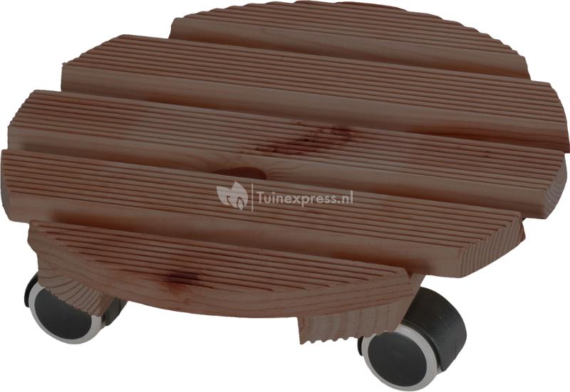 Een grote plantenbak in huis of in de tuin is natuurlijk een prachtige decoratie, helaas zijn ze zo lastig te verplaatsen. Door een plantentrolley onder de plantenbak te zetten kunt u de plantenbakken op ieder gewenst moment gemakkelijk verplaatsen. De plantentrolley lounge rond donker gebeitst is een ronde plantentrolley met een diameter van 30 centimeter. De trolley is geschikt voor op tapijt, parket of laminaat en door de zachte wielen zal de ondergrond niet beschadigen. De trolley kan natuurlijk ook buitenshuis gebruikt worden. De donkere kleur zorgt ervoor dat de trolley niet teveel opvalt onder een donkere plantenbak.