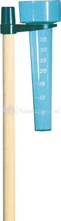 De regenmeter heeft een inhoud van 35 millimeter en een lengte van 25 centimeter. De stok wordt niet meegeleverd.