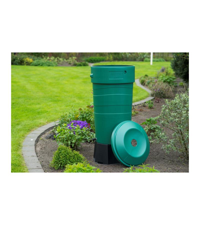 De kunststof regenton is vervaardigd uit uv-bestendig polyethyleen (kunststof) met een hoge dichtheid en een inhoud van 180 liter. De groene kleur van de regenton zorgt ervoor dat hij niet opvalt en samenvalt met het groen in uw tuin. De regenton is voorzien van een stevige deksel en kunststof aftapkraan. Hierdoor is het mogelijk om het regenwater via de bovenkant uit de regenton te halen of uw emmer of gieter te vullen via de kraan aan de onderkant. Aangezien de aftapkraan zich ver aan de onderkant van de ton bevindt, wordt de regenton optimaal benut en kan de ton tot de bodem worden leeggemaakt. Een voet wordt echter hierdoor wel aangeraden om de ton hoger te kunnen plaatsen zodat u een gieter of emmer makkelijker onder de kraan plaatsen.