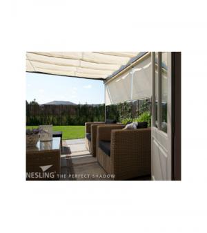 Naast schaduwdoeken komt Nesling ook met dé oplossing voor de laagstaande ochtend- en avondzon. Het Coolfit rolgordijn gebroken wit zorgt voor een perfecte zonwering waardoor u ieder moment van de dag van de buitenlucht kunt genieten. Het Coolfit rolgordijn is gemaakt van zeer sterk en geknoopt HDPE en staat hierdoor garant voor een lange levensduur. Door dit materiaal is het doek schimmelwerend en eenvoudig te reinigen. Naast de decoratieve functie die het rolgordijn heeft, is het ook een prachtige aanwinst voor het terras. Door de strakke afwerking en het moderne design staat het rolgordijn mooi op ieder terras.