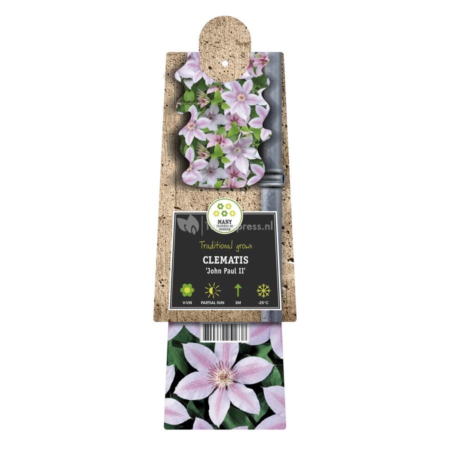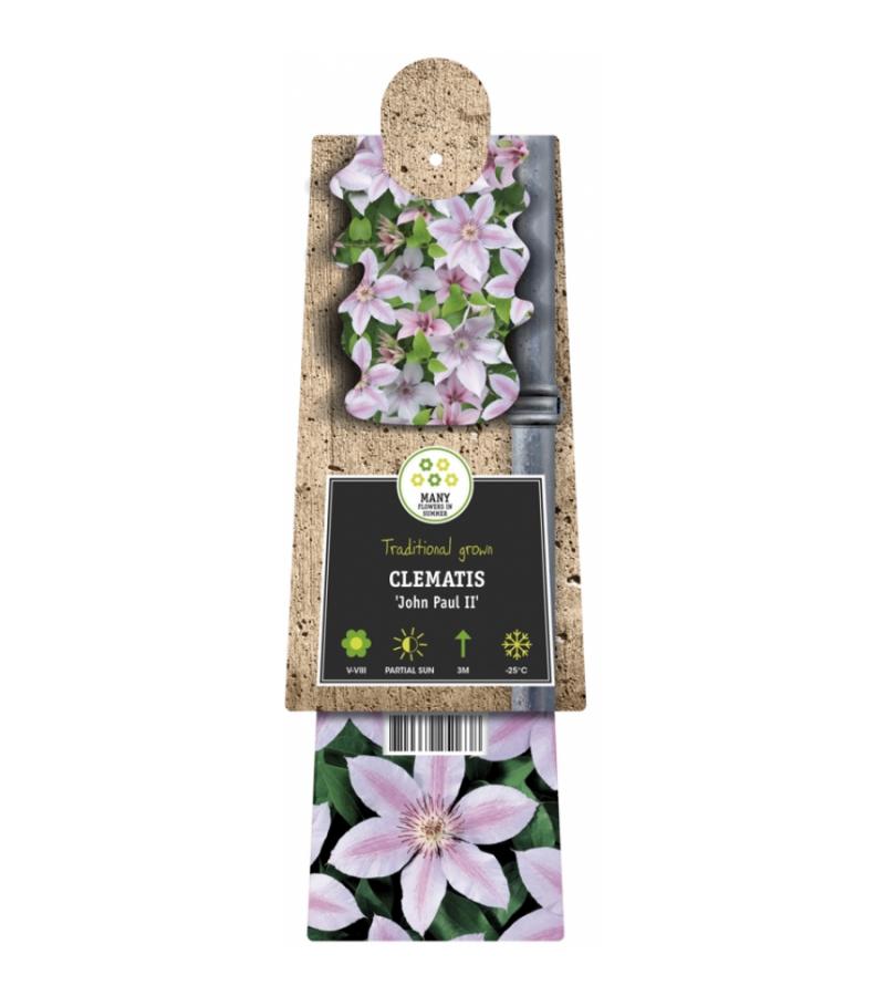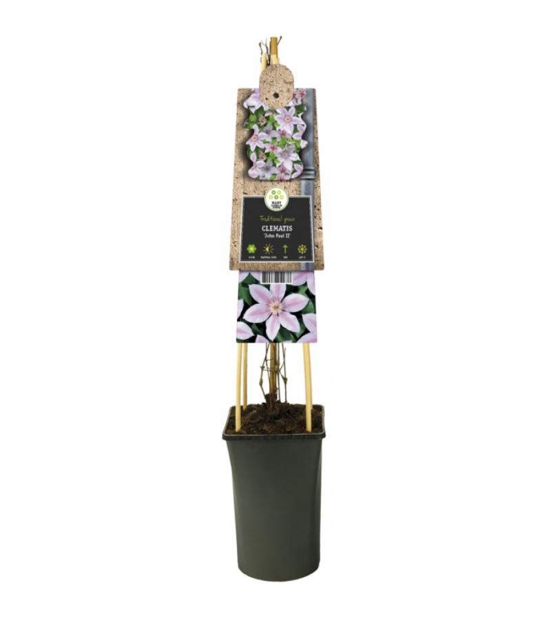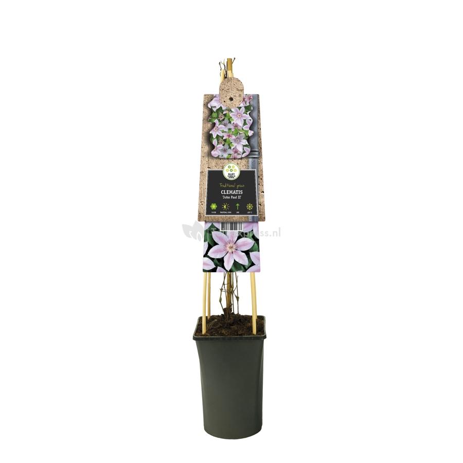 Lichtroze, soms bijna witte, prachtige bloemen met een donkerdere streep over het midden van het bloemblad sieren deze bosrank. Een bosrank heeft begeleiding nodig om al slingerend tot hoogte te kunnen groeien. Dit kan bijvoorbeeld in de vorm van een klimrek. Combineer verschillende soorten bosrank met een uiteenlopende bloeitijd en geniet van het vroege voorjaar tot begin najaar van een prachtige groene wand met de mooiste afwisseling van bloemen.