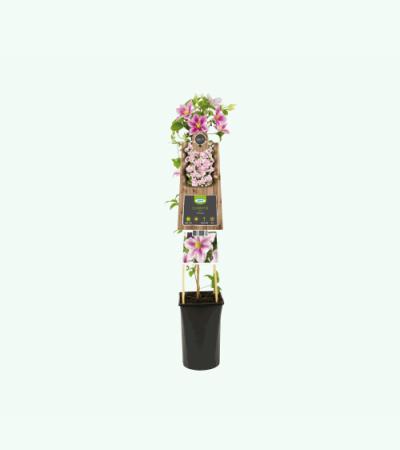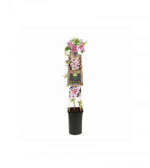 Deze bosrank is gesierd met roze gestreepte prachtige, volle bloemen. De plant kan na de eerste bloei licht gesnoeid worden en de uitgebloeide bloemen verwijderen; dan wacht u een tweede bloei! Bijzonder want was de bloem bij de eerste bloei nog dubbel bloemig, is de bloem bij de tweede bloei enkelbloemig. Zo lijkt het alsof u twee verschillende planten in uw tuin heeft!