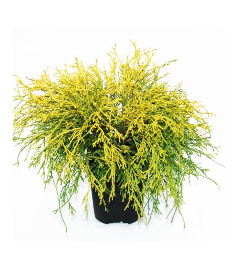 Een zeer hoge sierfactor heeft deze overhangende conifeer. Het is een zeer langzame groeier, krijgt hij de tijd dan kan hij 3-5m hoog worden. Maar na 10 jaar zal dit 'slechts' nog maar 2,5m zijn. Het gele loof geeft een fris accent in de tuin waarbij uiteraard ook de wintertuin gekleurd wordt.