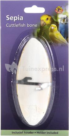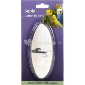 Sepia bestaat uit harde kalk aan de buitenzijde en de binnenzijde is wat zachter en bestaat uit zouten. Het is een 100 procent natuurproduct. Sepia is een bron van mineralen die uw vogel ten goede komen. Voorzien van een handige ophangclip aan de achterzijde.