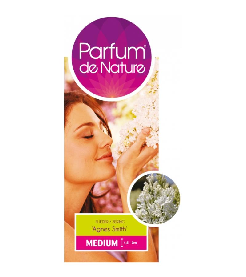 Deze sering heeft de hoge kwaliteiten die gesteld worden aan de Parfum de Nature serie. Dit betekent dat de plant geënt is op een sterke onderstam die vrijwel ongevoelig is voor wilde scheutvorming. Het wortelstelsel is zeer sterk waardoor de plant goed kan aanslaan in uw tuin en ieder moment van het jaar aangeplant kan worden. Daarnaast wordt deze serie gekweekt op een verfijnde geur waardoor u nog meer kunt genieten van uw sering. De sering “Agnes Smith“ Parfum de Nature zal een hoogte bereiken tussen de 150 en 200 cm.