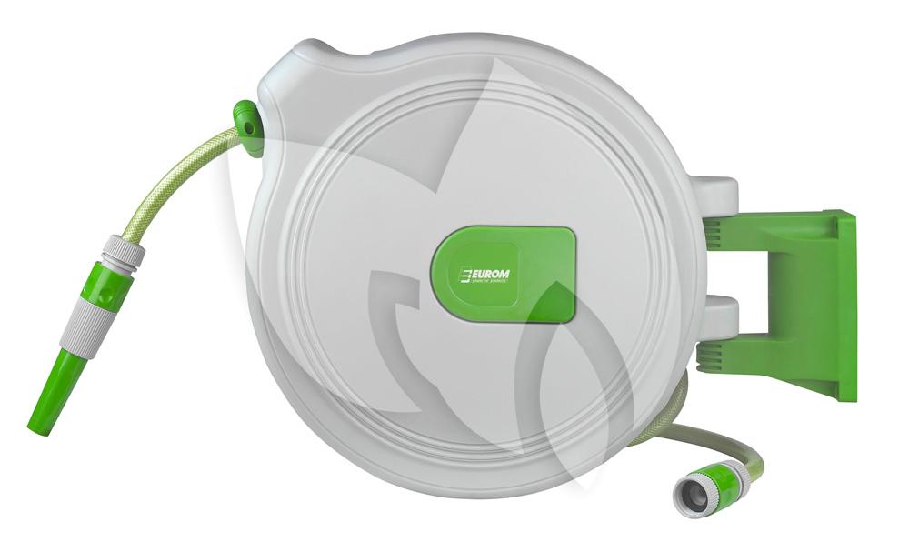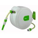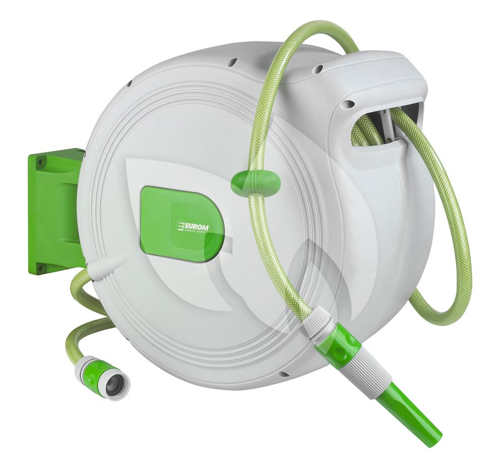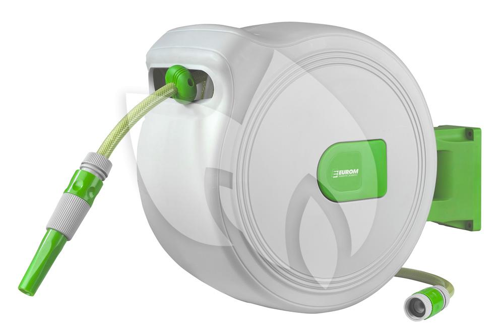 De slanghaspel is gemaakt van hoogwaardige materialen waardoor hij een lange levensduur heeft. Daarnaast is de slanghaspel uitgevoerd met een stop-waar-u-wilt-systeem waardoor u de slang tot iedere gewenste lengte kan afrollen en vergrendelen. Na gebruik rolt de slang zich weer automatisch op door het automatic-safe-return-systeem, dit systeem zorgt ervoor dat de slang rustig terugrolt zodat het rondslingeren van het uiteinde van de slang voorkomen wordt. Met de bijgeleverde montagesteun kunt u de slanghaspel aan de muur bevestigen, ten opzichte van de muur kan de slanghaspel 180 ° worden gedraaid. De slang in de haspel heeft een lengte van 30 meter.