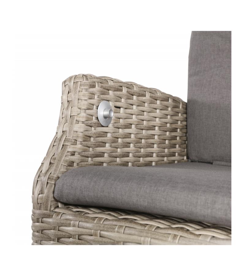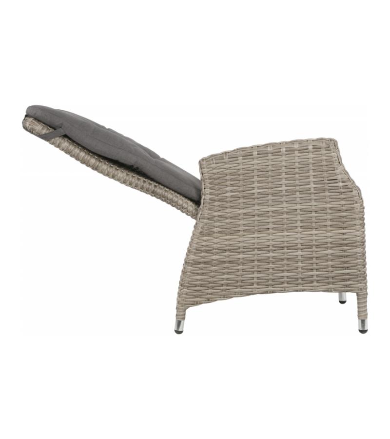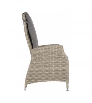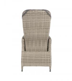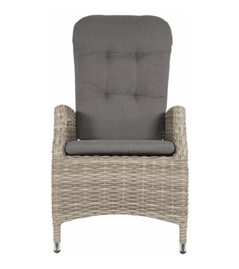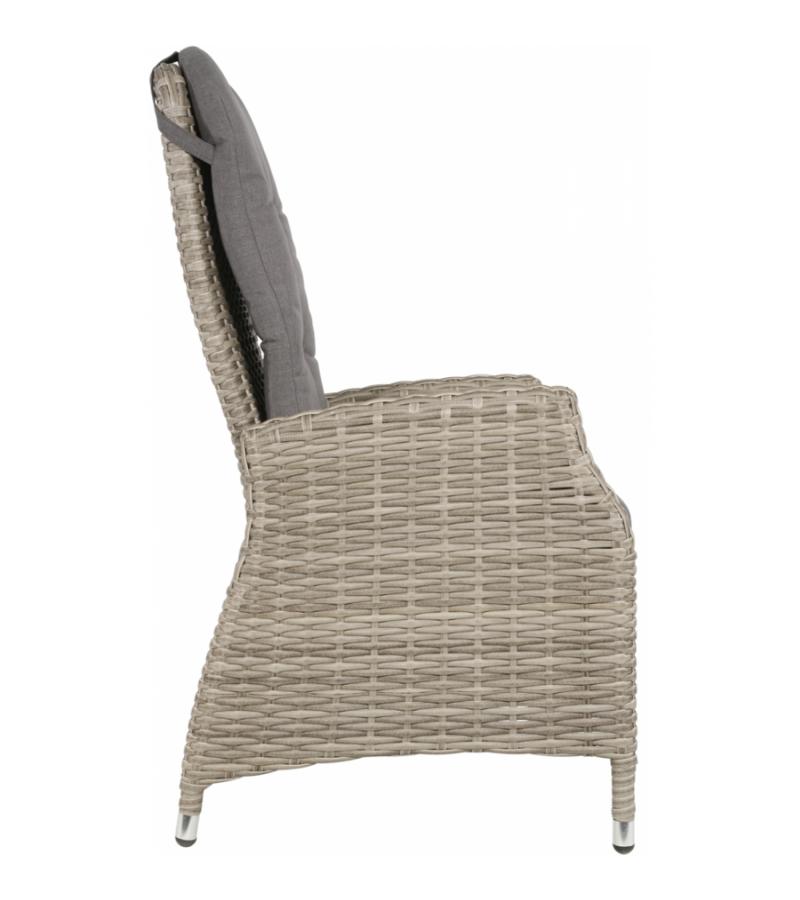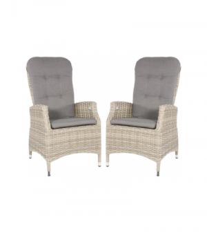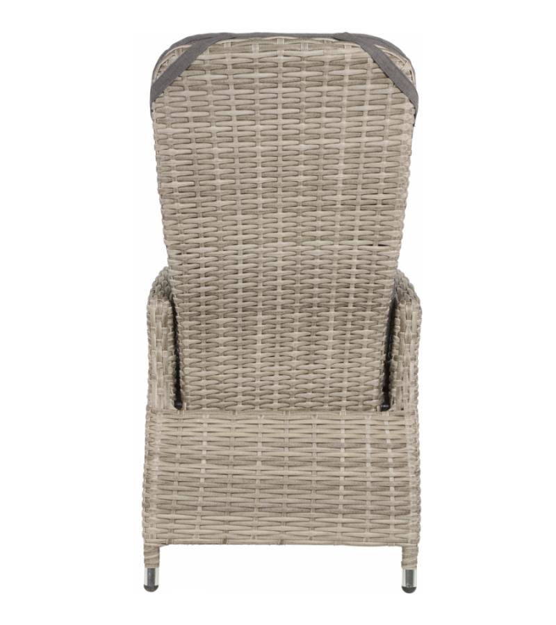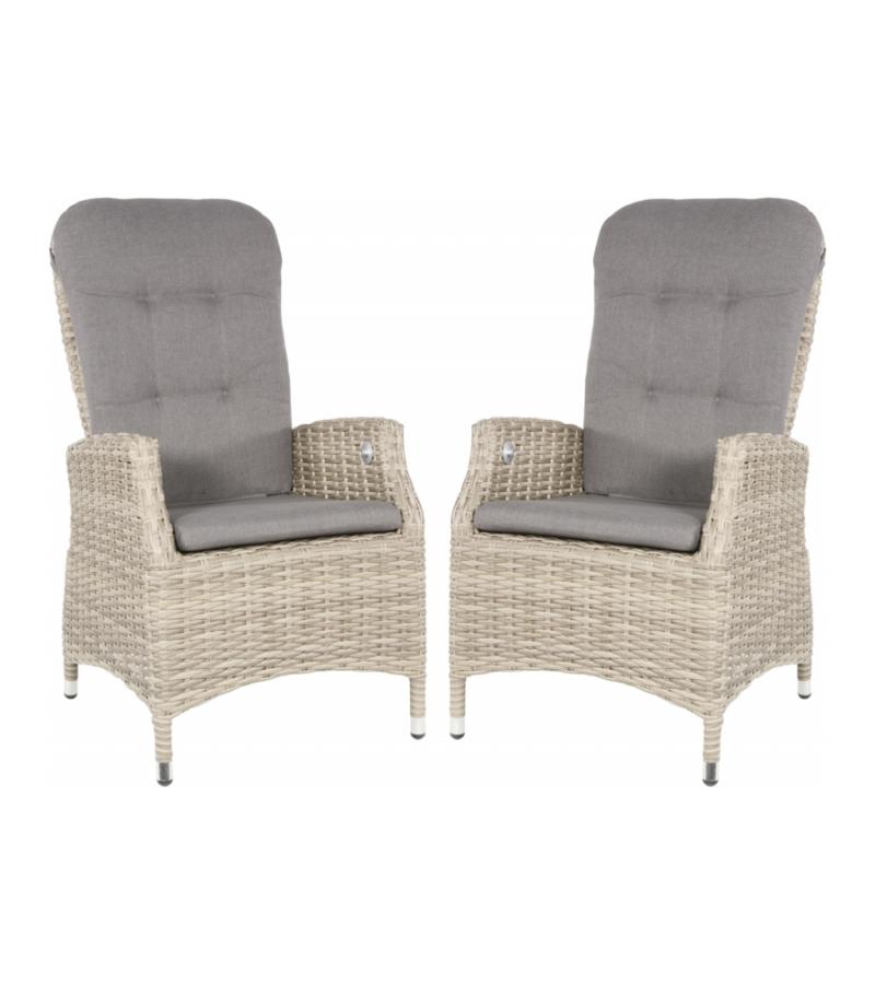 Deze zeer comfortabele tuinstoelen zitten heerlijk. De kussens geven naast comfort ook voldoende ondersteuning voor een heerlijke zit. De stoelen zijn prima te combineren met verschillende tafels naar eigen smaak. Wilt u na het diner nog even genieten van het zonnetje? Met een druk op de knop kantelt u de rugleuning zodat u even weg kunt soezen in de zon. Het aluminium frame is omwikkeld met wicker. Wicker is een onderhoudsarme kunststof waardoor u weinig omkijken heeft naar uw tuinmeubelen. Even een vochtig doekje er overheen halen is in principe voldoende.
