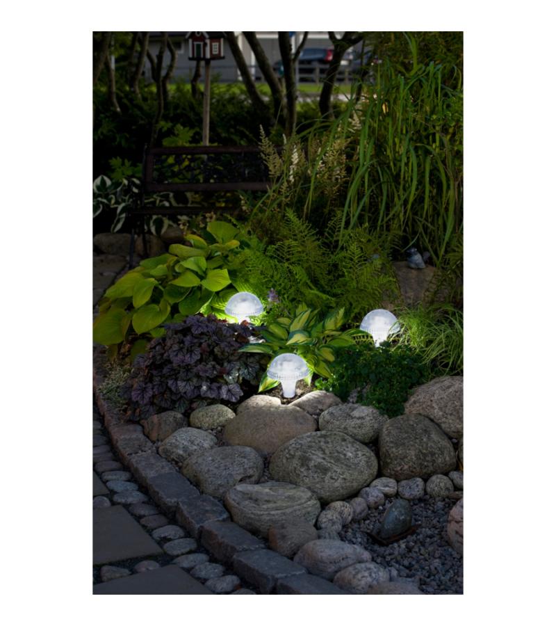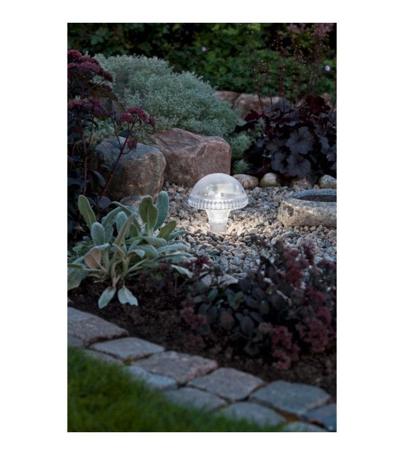 Fleur uw planten op met de assisi paddestoel wit. De assisi paddestoel is gemaakt van transparant kunststof en werkt op zonne-energie. De led assisi paddestoel heeft een diameter van 14.5cm en is 27.5cm hoog, verder is deze solarlamp makkelijk in uw tuin te plaatsen doordat je hem simpelweg in de grond kan steken op een plek waar de zon schijnt. De led assisi paddestoel werkt op een batterij die overdag wordt opgeladen door de zonne-energie die de paddestoel opvangt, nadat de batterij volledig opgeladen is zal deze 6 uur lang uw tuin kunnen verlichten. Verder is deze solarlamp uitgerust met een aan/uit schakelaar zodat u hem aan kan zetten wanneer u wilt. Bij aanschaf zitten de lichtbron en batterij erbij inbegrepen.