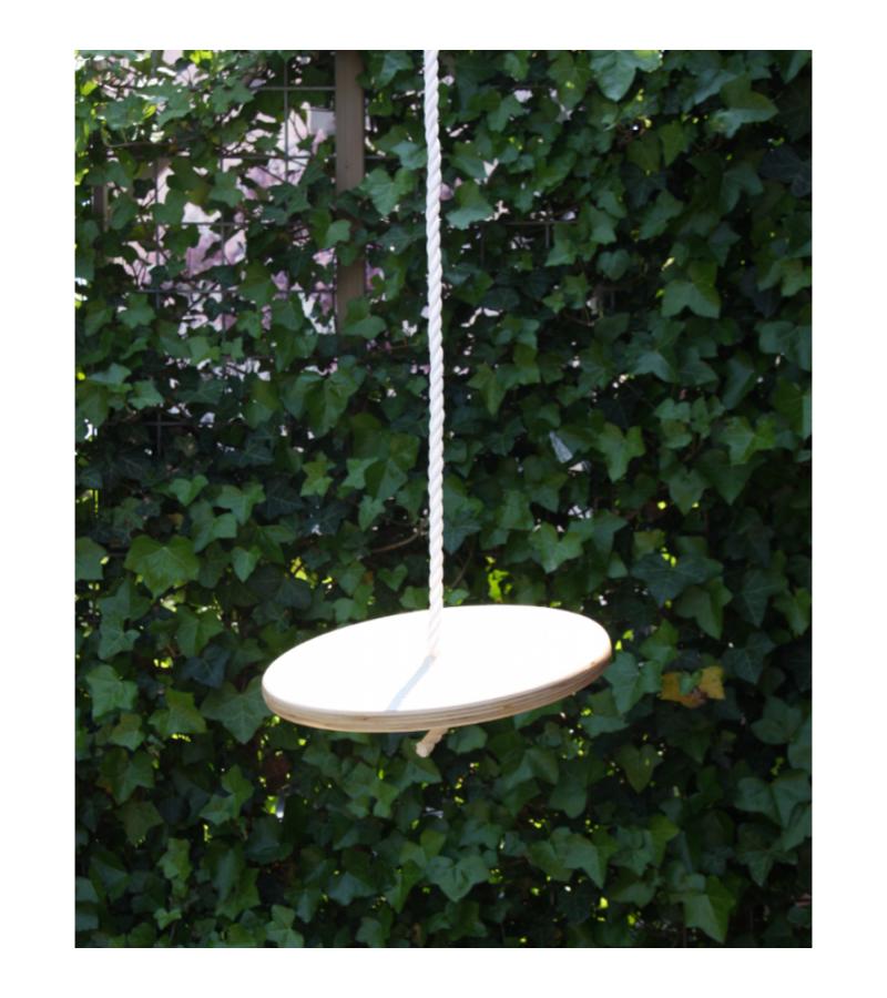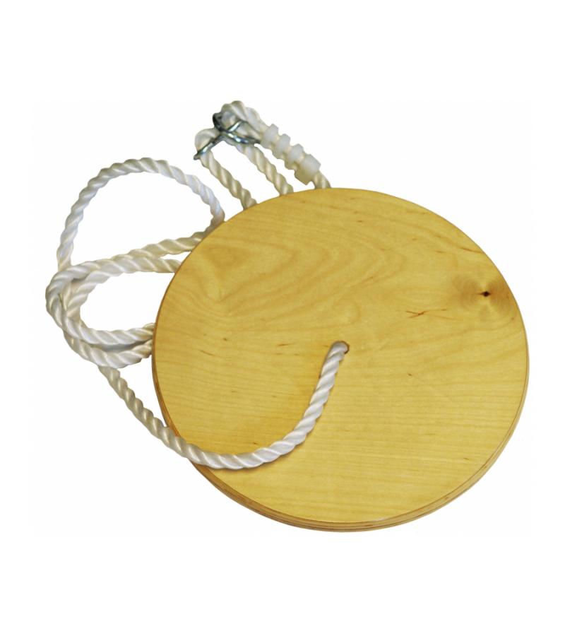 Houten schommeldisk met een diameter van 30 cm.
